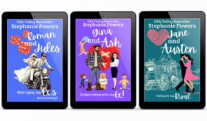 Roman and Jules was supposed to be a novella that I gave away free for my newsletter (this was when I first discovered that you needed to give something away for free to build a newsletter. At this point, all my friends had newsletters and I was WAY BEHIND on the times). AND... while creating it, I realized that I was incapable of writing anything short. And so, my sister (a film person all the way) told me, "Look, novels are like writing a limited 6-hour series and novellas are like writing a music video--lots of emotion with a compelling storyline that resonates fast." She then gave me an actual formula for novellas: 1--meet cute, 2--present the problem, 3--two to three short rising actions ("SHORT, Stephanie!!"), 4--a misunderstanding, and 5--the happy end. And so keeping that in mind, I wrote "Bonnie and Klyde," which actually ended up quite cute (in my biased opinion).